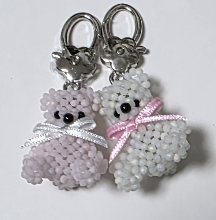 精巧なハンドメイド方式で完成したクマのぬいぐるみ型のキーリングです。