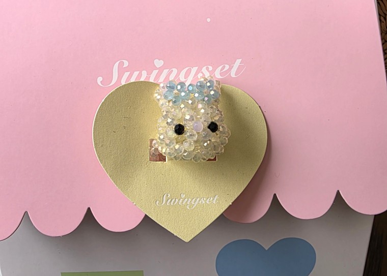 白いウサギさんの色違いで、こちらは淡いイエローのようなクリーム色です。 キラキラと光り、とても可愛らしいです。左右で違う色をつけたり、いろいろと楽しめます。 サイズもウサギさんの大きさも大変好みで気に入っております。