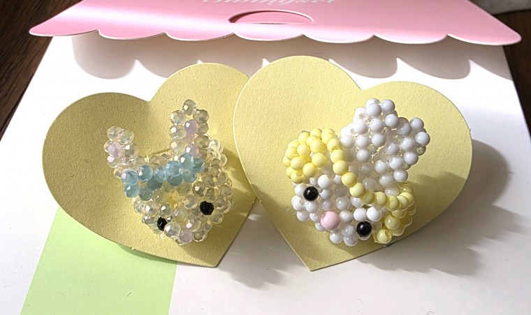 イヤーマフをしているウサギの顔の形をしたかわいいビーズリングです。